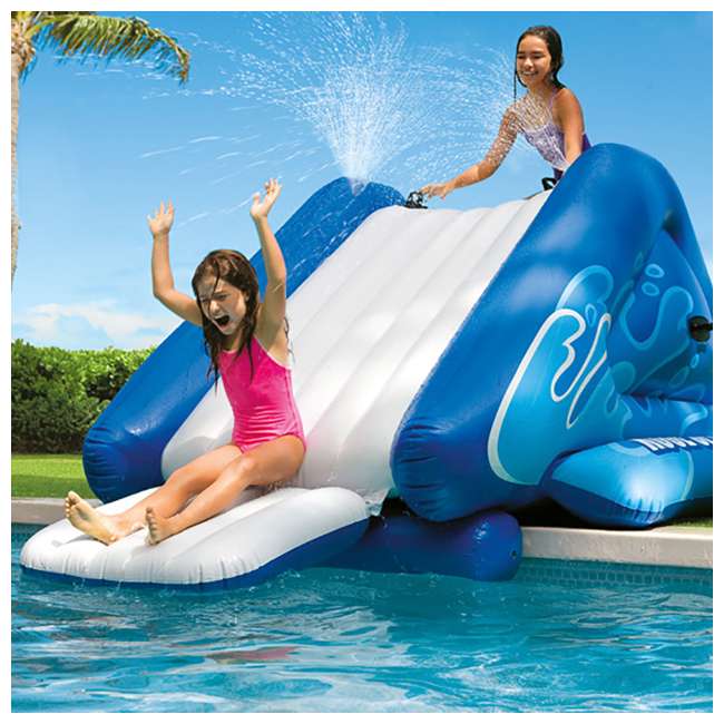 Have a blast this summer with the intex kool . Intex water slide inflatable float pool toy kids . Sorry, this item is currently unavailable · the intex quick fill pumps have a sleek aerodynamic design with the power to inflate even the largest inflatables in . Have a blast this summer with the intex kool . The kool splash water slide accepts a garden hose for built in sprayers to keep the waterslide surface wet and fun.